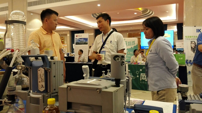 第十一屆全國天然有機化學學術會議由上海復旦大學承辦,規(guī)模超大,橫向合作,效果不錯,收獲不小,很多都是我們的老朋友,很多老客戶對公司的快速發(fā)展頗為贊賞,看到公司代理的VACUUBRAND化學隔膜泵系列及真空系統(tǒng)配套旋轉蒸發(fā)儀和低溫循環(huán)裝置組合,更有德國普蘭德的移液槍等耗材系列,更是贊賞不已。
