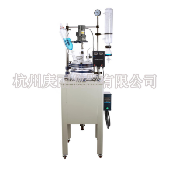 本機(jī)具有電動(dòng)恒速攪拌系統(tǒng)、冷凝、滴加系統(tǒng)、加熱浴鍋。在攪拌物料的同時(shí),浴鍋對(duì)釜內(nèi)物料進(jìn)行加熱,在真空條件下可以提高蒸發(fā)效率(需連接真空裝置),溶媒蒸汽經(jīng)玻璃冷凝盤管時(shí)冷卻成液體(需連接冷卻裝置),可回流到釜內(nèi),也可通過(guò)回流彎頭下部閥門進(jìn)行回收。反應(yīng)完畢,物料可從釜底的側(cè)出料口放出。