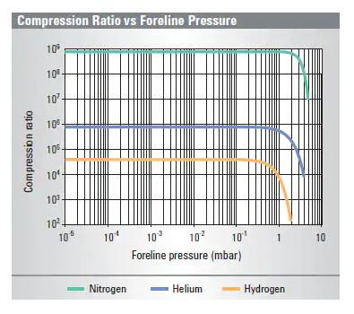 Turbo-V 2300 TwisTorr 壓縮比與前級壓力關(guān)系圖