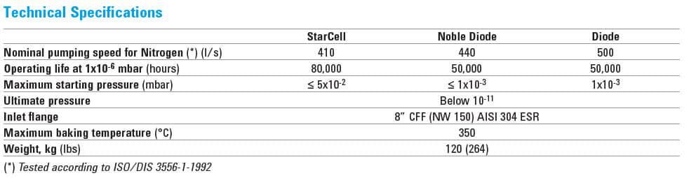 特點:安捷倫大型 VacIon Plus 離子泵具有從 150 到 1000 L/s 的氮?dú)獬樗俜秶?,并具?Diode、Noble Diode 和 StarCell 型號。