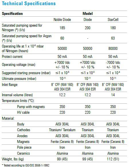 特點:安捷倫大型 VacIon Plus 離子泵具有從 150 到 1000 L/s 的氮氣抽速范圍,并具有 Diode、Noble Diode 和 StarCell 型號。
